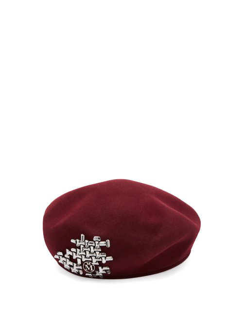 Maison Michel Bonnie Bead Embellished Beret Womens Burgundy